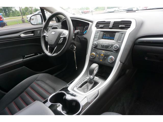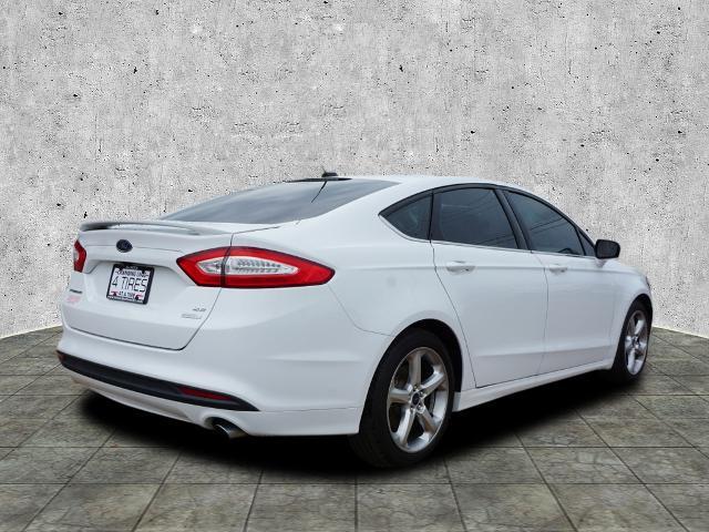 New Price! Clean CARFAX. White 2016 Ford Fusion SE FWD 6-Speed Automatic 1.5L EcoBoost **Clean Vehicle History Report** 6-Speed Automatic 17"" Painted Aluminum Wheels 4-Wheel Disc Brakes AM/FM radio: SiriusXM Brake assist Bumpers: body-color Cloth Front Bucket Seats Delay-off headlights Dual front side impact airbags Electronic Stability Control Exterior Parking Camera Rear Four wheel independent suspension Heated door mirrors Illuminated entry Knee airbag Occupant sensing airbag Power door mirrors Power driver seat Power passenger seat Radio: AM/FM Stereo/MP3/Single-CD Remote keyless entry SiriusXM Radio Speed-sensing steering Steering wheel mounted audio controls SYNC Communications & Entertainment System Traction control Turn signal indicator mirrors.24/36 City/Highway MPGAwards: * 2016 KBB.com 10 Best Sedans Under $25 000 * 2016 KBB.com Brand Image AwardsReviews: * Fuel-efficient turbocharged engines; sharp handling; composed ride; quiet cabin; advanced technology and safety features; eye-catching style; available all-wheel drive. Source: Edmunds