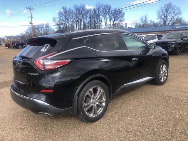 Clean CARFAX. Certified. Magnetic Black Metallic 2016 Nissan Murano Platinum FWD CVT with Xtronic 3.5L V6 DOHC CVT with Xtronic Blind spot sensor: warning Heated & Cooled Front Bucket Seats Intelligent Cruise Control Navigation System Platinum Technology Package Power Liftgate Power Panoramic Moonroof Predictive Forward Collision Warning (PFCW) Radio: AM/FM/CD Audio System w/Navigation.Odometer is 40155 miles below market average! 21/28 City/Highway MPGCertification Program Details: COVERS ALL OF THESE SYSTEMS AND COMPONENTS: Engine | Transmission | Front-wheel drive assembly Rear-wheel drive assembly Cooling system Fuel system | Front-wheel steering assembly Air-conditioning & heating system Brake system Audio entertainment system | Suspension assembly Electronic instruments Chassis hardware Electrical system PLUS...24-HOUR EMERGENCY ROADSIDE SERVICE Provides towing assistance; dead battery service; flat tire assistance; fuel oil and water delivery service; and lockout service expenses up to $50 per occurrence for 12 months from the vehicle sale date.Were confident we have the right price for you the right quality for you the right level of trust for you and the proper respect for how you want to purchase an automobile. We pride ourselves on the best and fastest way to get all the information you need to make well-informed decisions all in 30 minutes or less. Express Buying is Fast Simple Friendly and Fair. It all adds up to the right car buying experience for you. Youll simply love the way we do business. Need specific reasons to start here? Have a look at the list below: Upfront prices. Zero hassles. Homer Skelton Chrysler Dodge Jeep Ram makes it easy to find the right car for you at a price you can trust. Your car's no-haggle price is the same online as it is on the lot and we will validate our pricing 100% of the time. We also offer very flexible financing options. All of our used cars are Quality Certified and come with a free vehicle history and safety recall report. We'll buy your car even if you don't buy ours.