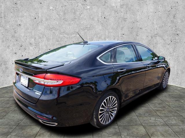 Black 2018 Ford Fusion AWD 6-Speed Automatic EcoBoost 2.0L I4 GTDi DOHC Turbocharged VCT 6-Speed Automatic AWD 4-Wheel Disc Brakes Alloy wheels AM/FM radio: SiriusXM AppLink/Apple CarPlay and Android Auto Auto-dimming door mirrors Auto-dimming Rear-View mirror Automatic temperature control Brake assist Dual front impact airbags Electronic Stability Control Exterior Parking Camera Rear Four wheel independent suspension Front Bucket Seats Front dual zone A/C Front fog lights Front...