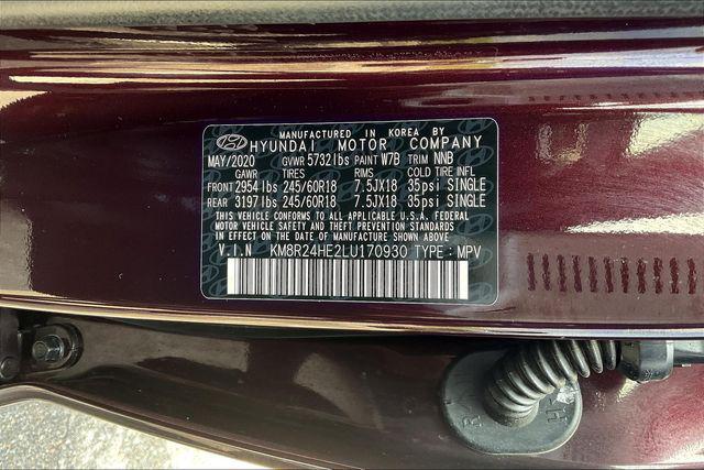 CARFAX One-Owner. Clean CARFAX. Certified. Sierra Burgundy 2020 Hyundai Palisade SEL FWD 8-Speed Automatic with SHIFTRONIC V6Homer Skelton is committed to meeting your automotive needs with speed flexibility and friendly customer service. Odometer is 39380 miles below market average! 19/26 City/Highway MPGHyundai Certified Pre-Owned Details: * Warranty Deductible: $50 * Powertrain Limited Warranty: 120 Month/100 000 Mile (whichever comes first) from original in-service date * Roadside Assistance * Limited Warranty: 60 Month/60 000 Mile (whichever comes first) from original in-service date * 173+ Point Inspection * Vehicle History * Includes 10-year/Unlimited mileage Roadside Assistance with Rental Car and Trip Interruption Reimbursement; Please see dealers for specific vehicle eligibility requirements. 10-Year/100 000 Mile Hybrid/EV Battery Warranty. 3 months Siru-iusXM trial subscriptionPower Sunroof P5 Sunroof 3.648 Axle Ratio 3rd row seats: split-bench 4-Wheel Disc Brakes 6 Speakers ABS brakes Air Conditioning Alloy wheels AM/FM radio Apple CarPlay & Android Auto Auto High-beam Headlights Auto-dimming Rear-View mirror Automatic temperature control Brake assist Bumpers: body-color Cargo Cover/Screen Cargo Net Cargo Tray Carpeted Floor Mats Delay-off headlights Driver door bin Driver vanity mirror Dual front impact airbags Dual front side impact airbags Electronic Stability Control Four wheel independent suspension Front anti-roll bar Front Bucket Seats Front Center Armrest Front dual zone A/C Front reading lights Fully automatic headlights Garage door transmitter: HomeLink Heated door mirrors Heated Front Bucket Seats Heated front seats Illuminated entry Knee airbag Low tire pressure warning Mudguards Occupant sensing airbag Outside temperature display Overhead airbag Overhead console Panic alarm Passenger door bin Passenger vanity mirror Power door mirrors Power driver seat Power steering Power windows Radio data system Radio: AM/FM/MP3 Display Audio Rear air conditioning Rear anti-roll bar Rear window defroster Rear window wiper Reclining 3rd row seat Remote keyless entry Roof rack: rails only Security system Speed control Speed-sensing steering Split folding rear seat Spoiler Stain Resistant Cloth Seat Trim Steering wheel mounted audio controls Tachometer Telescoping steering wheel Tilt steering wheel Traction control Trip computer Turn signal indicator mirrors Variably intermittent wipers and Wheels: 18"" x 7.5J Machine Finish Alloy.