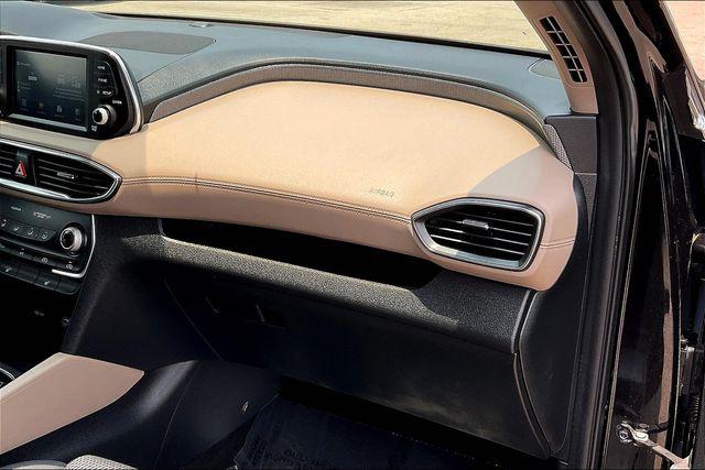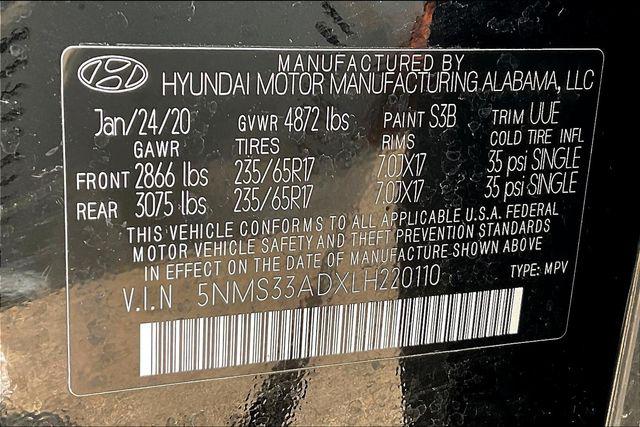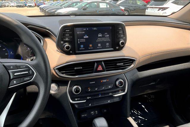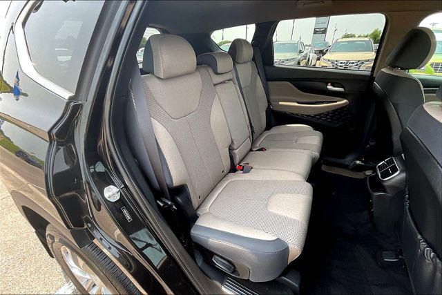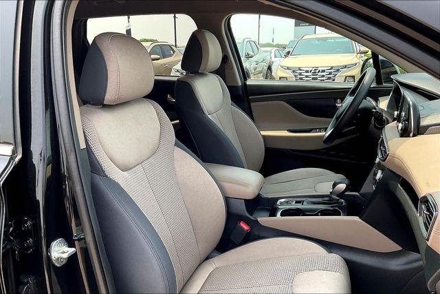 CARFAX One-Owner. Clean CARFAX. Certified. Twilight Black 2020 Hyundai Santa Fe SEL 2.4 FWD 8-Speed Automatic with SHIFTRONIC 2.4L I4 DGI DOHC 16V LEV3-ULEV70 185hpHomer Skelton is committed to meeting your automotive needs with speed flexibility and friendly customer service. Odometer is 14358 miles below market average! 22/29 City/Highway MPGHyundai Certified Pre-Owned Details: * Vehicle History * Warranty Deductible: $50 * Powertrain Limited Warranty: 120 Month/100 000 Mile (whichever comes first) from original in-service date * Limited Warranty: 60 Month/60 000 Mile (whichever comes first) from original in-service date * 173+ Point Inspection * Roadside Assistance * Includes 10-year/Unlimited mileage Roadside Assistance with Rental Car and Trip Interruption Reimbursement; Please see dealers for specific vehicle eligibility requirements. 10-Year/100 000 Mile Hybrid/EV Battery Warranty. 3 months Siru-iusXM trial subscriptionOption Group 01 17"" x 7.0J Alloy Wheels 4-Wheel Disc Brakes 6 Speakers ABS brakes Air Conditioning Alloy wheels AM/FM radio: SiriusXM Apple CarPlay & Android Auto Auto High-beam Headlights Axle Ratio 3.798 Brake assist Bumpers: body-color Cargo Cover Cargo Tray Carpeted Floor Mats Delay-off headlights Driver door bin Driver vanity mirror Dual front impact airbags Dual front side impact airbags Electronic Stability Control Emergency communication system: Blue Link Exterior Parking Camera Rear First Aid Kit Four wheel independent suspension Front anti-roll bar Front Bucket Seats Front Center Armrest Front fog lights Front reading lights Fully automatic headlights Heated door mirrors Heated Front Bucket Seats Heated front seats Illuminated entry Low tire pressure warning Occupant sensing airbag Outside temperature display Overhead airbag Overhead console Panic alarm Passenger door bin Passenger vanity mirror Power door mirrors Power driver seat Power steering Power windows Radio: AM/FM/MP3 Display Audio Rear anti-roll bar Rear seat center armrest Rear window defroster Rear window wiper Remote keyless entry Security system Speed control Speed-sensing steering Split folding rear seat Spoiler Stain-Resistant Cloth Seating Surfaces Steering wheel mounted audio controls Tachometer Telescoping steering wheel Tilt steering wheel Traction control Trip computer Variably intermittent wipers and Wheel Locks.