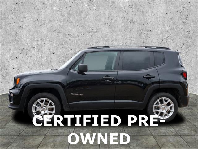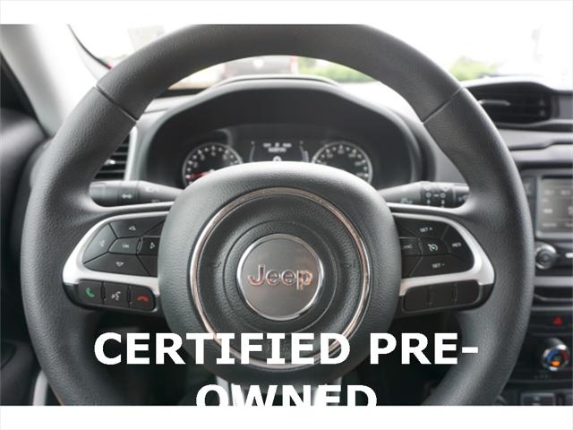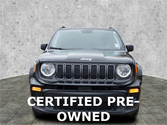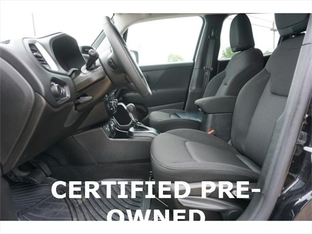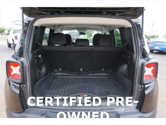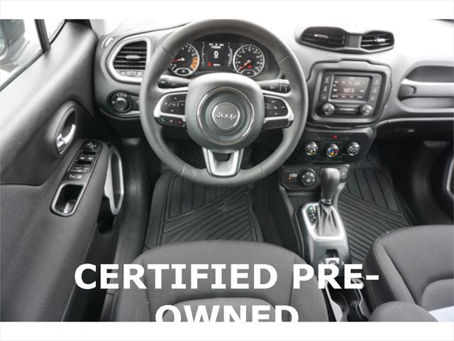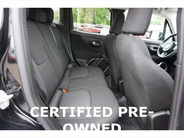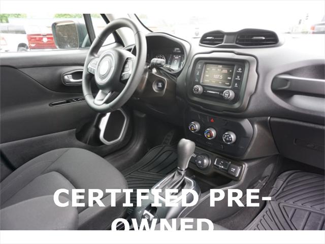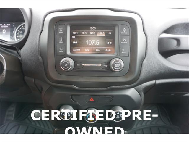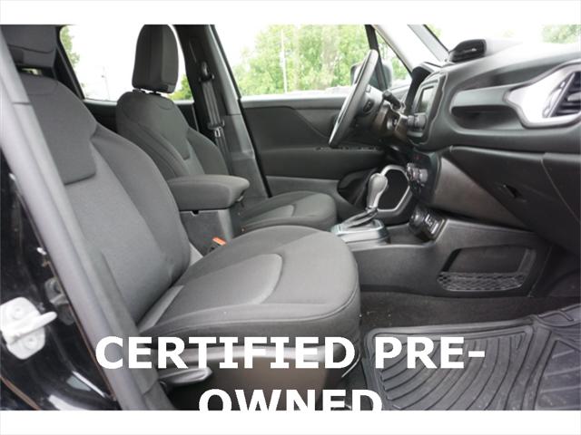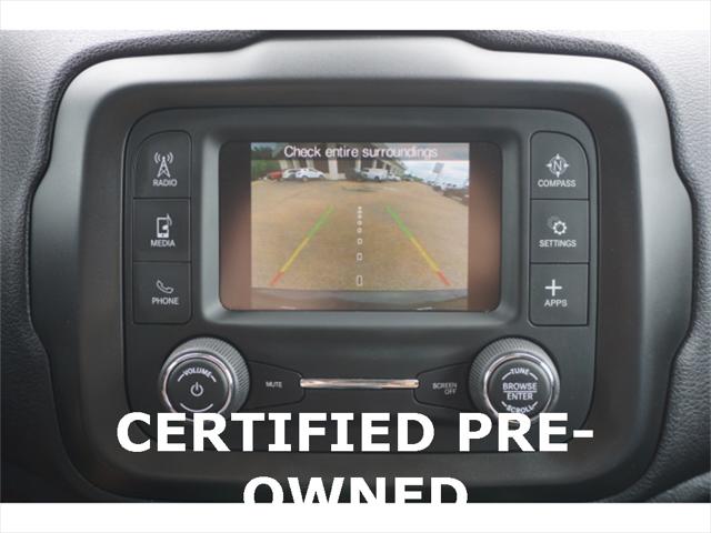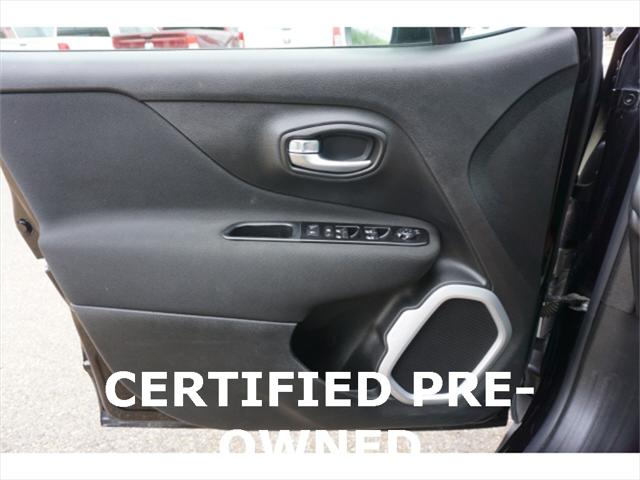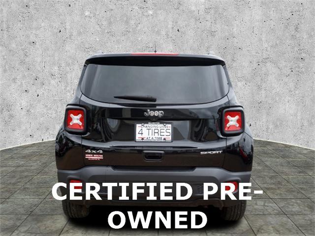 Clean CARFAX. Certified. Black Clearcoat 2020 Jeep Renegade Sport 4WD 9-Speed 948TE Automatic 1.3L I4 17"" x 7.0"" Aluminum Wheels 4-Wheel Disc Brakes ABS brakes Black Side Roof Rails Brake assist Deep Tint Sunscreen Glass Dual front side impact airbags Electronic Stability Control Four wheel independent suspension Front Bucket Seats Heated door mirrors Illuminated entry Keyless Entry w/Panic Alarm Knee airbag Occupant sensing airbag ParkView Rear Back-Up Camera Passive Entry Remote Start Package Power door mirrors Power windows Quick Order Package 22A Radio data system Radio: Uconnect 3 w/5"" Display Rear window defroster Remote keyless entry Remote Start System Sport Appearance Group Sport Appearance Group (DISC) Steering wheel mounted audio controls Tilt steering wheel Traction control.23/29 City/Highway MPGFCA US Certified Pre-Owned Details: * Vehicle History * Includes First Day Rental Car Rental Allowance and Trip Interruption Benefits. SiriusXM 3 month trial subscription * Warranty Deductible: $100 * Limited Warranty: 3 Month/3 000 Mile (whichever comes first) after new car warranty expires or from certified purchase date * Transferable Warranty * Powertrain Limited Warranty: 84 Month/100 000 Mile (whichever comes first) from original in-service date * 125 Point Inspection * Roadside Assistance