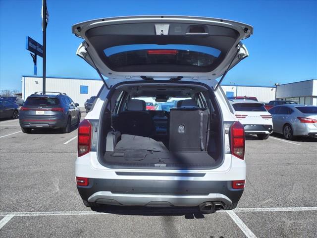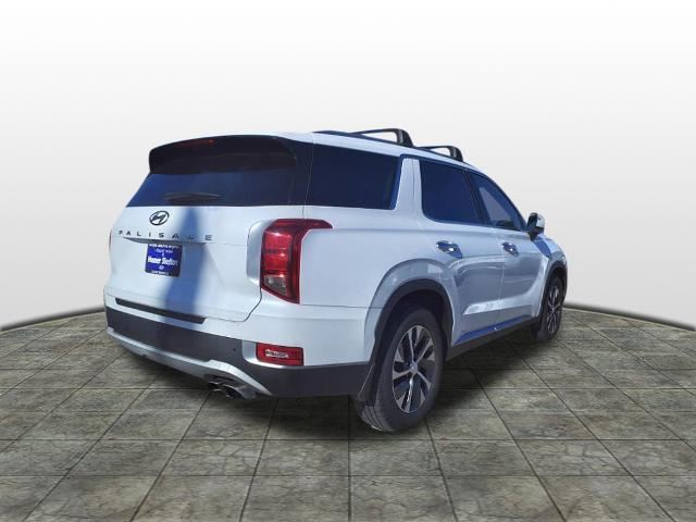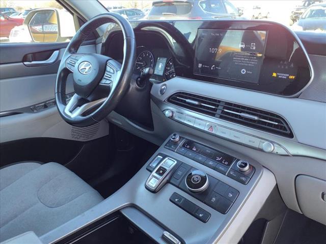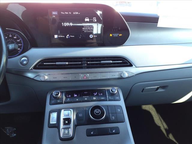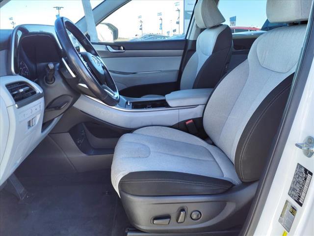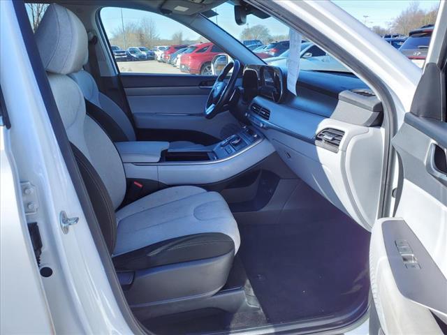 CARFAX One-Owner. Clean CARFAX. Certified. Hyper White 2021 Hyundai Palisade SEL FWD 8-Speed Automatic with SHIFTRONIC V6Homer Skelton is committed to meeting your automotive needs with speed flexibility and friendly customer service. 19/26 City/Highway MPGHyundai Certified Pre-Owned Details: * Roadside Assistance * Vehicle History * Warranty Deductible: $50 * 173+ Point Inspection * Powertrain Limited Warranty: 120 Month/100 000 Mile (whichever comes first) from original in-service date * Includes 10-year/Unlimited mileage Roadside Assistance with Rental Car and Trip Interruption Reimbursement; Please see dealers for specific vehicle eligibility requirements. 10-Year/100 000 Mile Hybrid/EV Battery Warranty. 3 months Siru-iusXM trial subscription * Limited Warranty: 60 Month/60 000 Mile (whichever comes first) from original in-service dateCargo Package (Cargo Block Cargo Net and Cargo Tray) Option Group 01 Hyundai Certified Pre-Owned Certified 3.648 Axle Ratio 3rd row seats: split-bench 4-Wheel Disc Brakes 6 Speakers ABS brakes Air Conditioning Alloy wheels AM/FM radio Apple CarPlay & Android Auto Auto High-beam Headlights Auto-dimming Rear-View mirror Automatic temperature control Brake assist Bumper Applique Bumpers: body-color Carpeted Floor Mats Cloth Seat Trim Delay-off headlights Driver door bin Driver vanity mirror Dual front impact airbags Dual front side impact airbags Electronic Stability Control First Aid Kit Four wheel independent suspension Front anti-roll bar Front Bucket Seats Front Center Armrest Front dual zone A/C Front reading lights Fully automatic headlights Garage door transmitter: HomeLink Heated door mirrors Heated Front Bucket Seats Heated front seats Illuminated entry Knee airbag Low tire pressure warning Mudguards Occupant sensing airbag Outside temperature display Overhead airbag Overhead console Panic alarm Passenger door bin Passenger vanity mirror Power door mirrors Power driver seat Power moonroof Power steering Power windows Radio data system Radio: AM/FM/MP3 Display Audio Rear air conditioning Rear anti-roll bar Rear reading lights Rear window defroster Rear window wiper Reclining 3rd row seat Remote keyless entry Roof Rack Cross Rails Roof rack: rails only Security system Speed control Speed-sensing steering Split folding rear seat Spoiler Steering wheel mounted audio controls Tachometer Telescoping steering wheel Tilt steering wheel Traction control Trip computer Turn signal indicator mirrors Variably intermittent wipers Wheel Locks and Wheels: 18"" x 7.5J Machine Finish Alloy.