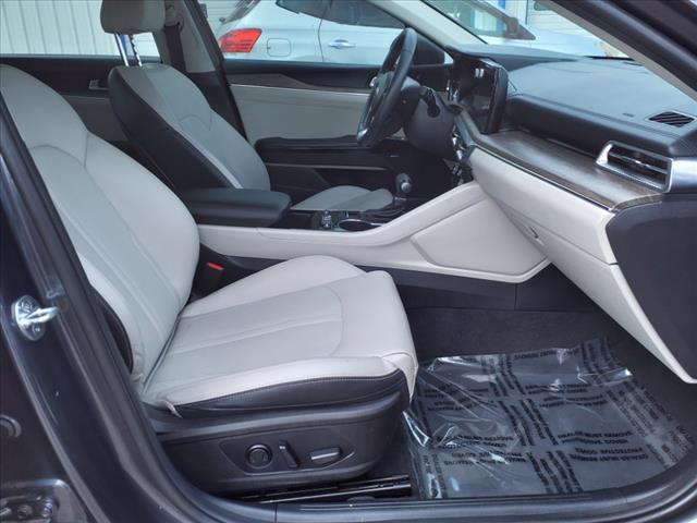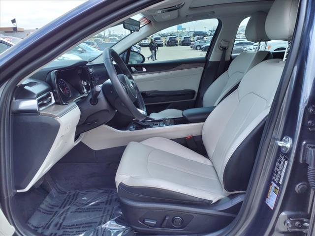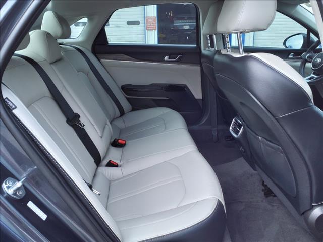 Gravity Gray 2021 Kia K5 EX FWD 8-Speed Automatic 1.6L I4 DGIHomer Skelton is committed to meeting your automotive needs with speed flexibility and friendly customer service. Odometer is 11600 miles below market average! 27/37 City/Highway MPGEX Premium Package (10-Way Power Passenger Seat Forward Collision Avoidance-Assist - Cyclist Forward Collision Avoidance-Assist - Junction Turn Heated Steering Wheel Highway Driving Assist LED Rear Combi Lamps Memory Driver's Seat & Outside Mirrors Navigation-Based Smart Cruise Control - Curve Outside Mirrors w/LED Turn Signals Parking Collision Avoidance-Assist - Reverse Power Child Lock Radio: AM/FM/SiriusXM Bose Premium Audio System Safe Exit Assist w/Lock and Smart Cruise Control w/Stop & Go) 4-Wheel Disc Brakes 6 Speakers ABS brakes Air Conditioning Alloy wheels AM/FM radio: SiriusXM Apple CarPlay & Android Auto Auto High-beam Headlights Automatic temperature control Brake assist Bumpers: body-color Cargo Mat Cargo Net Carpeted Floor Mats Delay-off headlights Driver door bin Driver vanity mirror Dual front impact airbags Dual front side impact airbags Electronic Stability Control Emergency communication system Four wheel independent suspension Front anti-roll bar Front Bucket Seats Front Center Armrest Front dual zone A/C Front reading lights Fully automatic headlights Heated & Ventilated Front Bucket Seats Heated door mirrors Heated front seats Illuminated entry Knee airbag Leatherette Seat Trim Low tire pressure warning Occupant sensing airbag Outside temperature display Overhead airbag Overhead console Panic alarm Passenger door bin Passenger vanity mirror Power door mirrors Power driver seat Power moonroof Power steering Power windows Radio data system Radio: AM/FM/MP3/SiriusXM Audio System Rear anti-roll bar Rear reading lights Rear seat center armrest Rear side impact airbag Rear window defroster Remote keyless entry Security system Speed control Speed-sensing steering Split folding rear seat Steering wheel mounted audio controls Tachometer Telescoping steering wheel Tilt steering wheel Traction control Trip computer Variably intermittent wipers Ventilated front seats and Wheels: 7.5J x 18"" Gray Machined Finish Alloy.