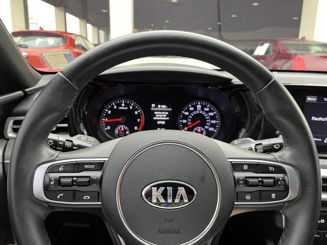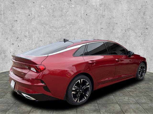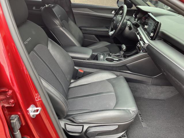 CARFAX One-Owner. Clean CARFAX. Passion Red 2021 Kia K5 GT-Line FWD 8-Speed Automatic 1.6L I4 DGI Apple CarPlay & Android Auto Automatic temperature control Brake assist Cloth/Leatherette Seat Trim Dual front side impact airbags Electronic Stability Control Forward Collision Avoidance-Assist - Cyclist Forward Collision Avoidance-Assist - Junction Turn Four wheel independent suspension Front Bucket Seats Front Center Armrest Front dual zone A/C Front fog lights Fully automatic headlights Gloss Black Pillar & Door Frame Cover GT-Line FWD Premium Package Heated door mirrors Illuminated entry LED Interior Lighting LED Projection Headlights Occupant sensing airbag Panoramic Sunroof Power door mirrors Power driver seat Radio: AM/FM/MP3 Audio System Rear side impact airbag Remote keyless entry Smart Cruise Control w/Stop & Go Speed-sensing steering Split folding rear seat Sport steering wheel Steering wheel mounted audio controls Turn signal indicator mirrors Wheels: 7.5J x 18"" Graphite Machined Finish Alloy Wireless Charger.Recent Arrival! Odometer is 805 miles below market average! 27/37 City/Highway MPG