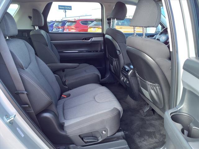 CARFAX One-Owner. Certified. Typhoon Silver 2022 Hyundai Palisade SEL FWD 8-Speed Automatic with SHIFTRONIC V6Homer Skelton is committed to meeting your automotive needs with speed flexibility and friendly customer service. 19/26 City/Highway MPGHyundai Certified Pre-Owned Details: * Warranty Deductible: $50 * Powertrain Limited Warranty: 120 Month/100 000 Mile (whichever comes first) from original in-service date * Includes 10-year/Unlimited mileage Roadside Assistance with Rental Car and Trip Interruption Reimbursement; Please see dealers for specific vehicle eligibility requirements. 10-Year/100 000 Mile Hybrid/EV Battery Warranty. 3 months Siru-iusXM trial subscription * Limited Warranty: 60 Month/60 000 Mile (whichever comes first) from original in-service date * 173+ Point Inspection * Vehicle History * Roadside AssistanceOption Group 01 Hyundai Certified Pre-Owned Certified 3.648 Axle Ratio 3rd row seats: split-bench 4-Wheel Disc Brakes 6 Speakers ABS brakes Air Conditioning Alloy wheels AM/FM radio Apple CarPlay & Android Auto Auto High-beam Headlights Auto-dimming Rear-View mirror Automatic temperature control Brake assist Bumpers: body-color Cargo Cover/Screen Cargo Net Cargo Tray Carpeted Floor Mats Cloth Seat Trim Delay-off headlights Driver door bin Driver vanity mirror Dual front impact airbags Dual front side impact airbags Electronic Stability Control Four wheel independent suspension Front anti-roll bar Front Bucket Seats Front Center Armrest Front dual zone A/C Front reading lights Fully automatic headlights Garage door transmitter: HomeLink Heated door mirrors Heated Front Bucket Seats Heated front seats Illuminated entry Knee airbag Low tire pressure warning Occupant sensing airbag Outside temperature display Overhead airbag Overhead console Panic alarm Passenger door bin Passenger vanity mirror Power door mirrors Power driver seat Power moonroof Power steering Power windows Radio data system Radio: AM/FM/MP3 Display Audio Rear air conditioning Rear anti-roll bar Rear audio controls Rear reading lights Rear window defroster Rear window wiper Reclining 3rd row seat Remote keyless entry Roof Rack Cross Rails Roof rack: rails only Security system Speed control Speed-sensing steering Split folding rear seat Spoiler Steering wheel mounted audio controls Tachometer Telescoping steering wheel Tilt steering wheel Traction control Trip computer Turn signal indicator mirrors Variably intermittent wipers and Wheels: 18"" x 7.5J Machine Finish Alloy.